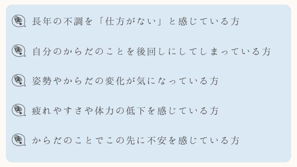 長年の不調や姿勢へのコンプレックス、