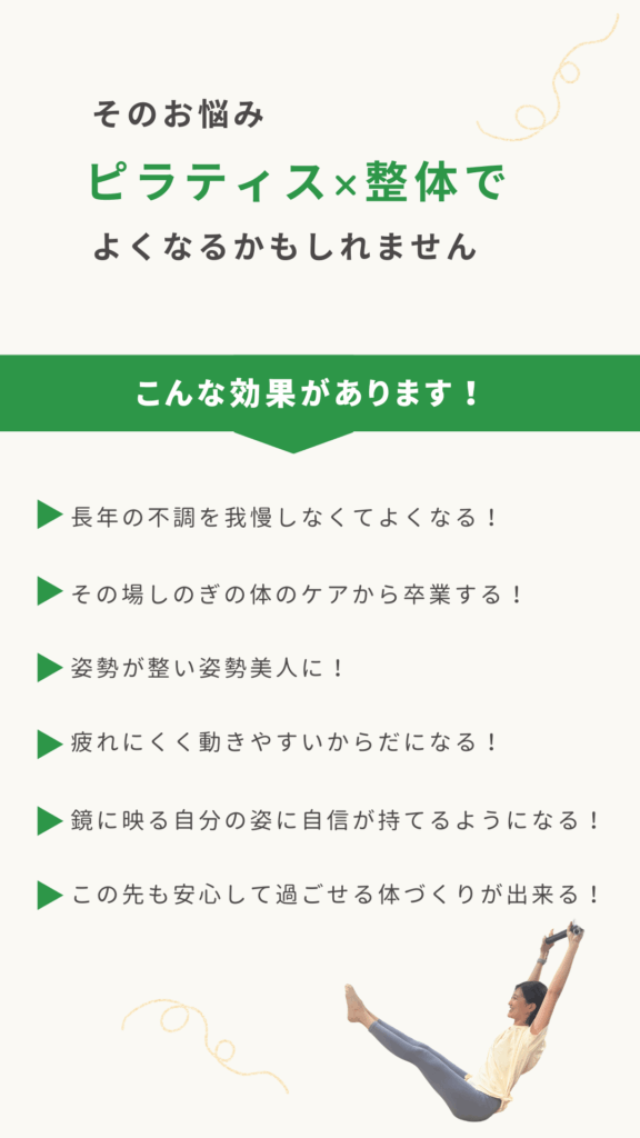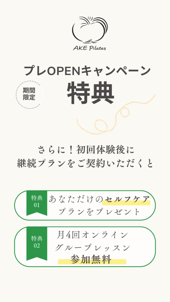 初めてピラティスを体験した時、身体の変化に驚きました。たった1時間なのに、顔の浮腫みがとれ、スッキリしたことが衝撃でピラティスのすごさを感じました。顔がむくんでいたことにすら気づかなかったので、血行を良くするって大事だなと思って続けています。
