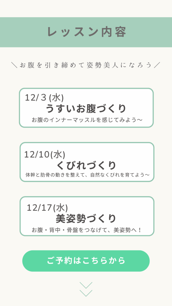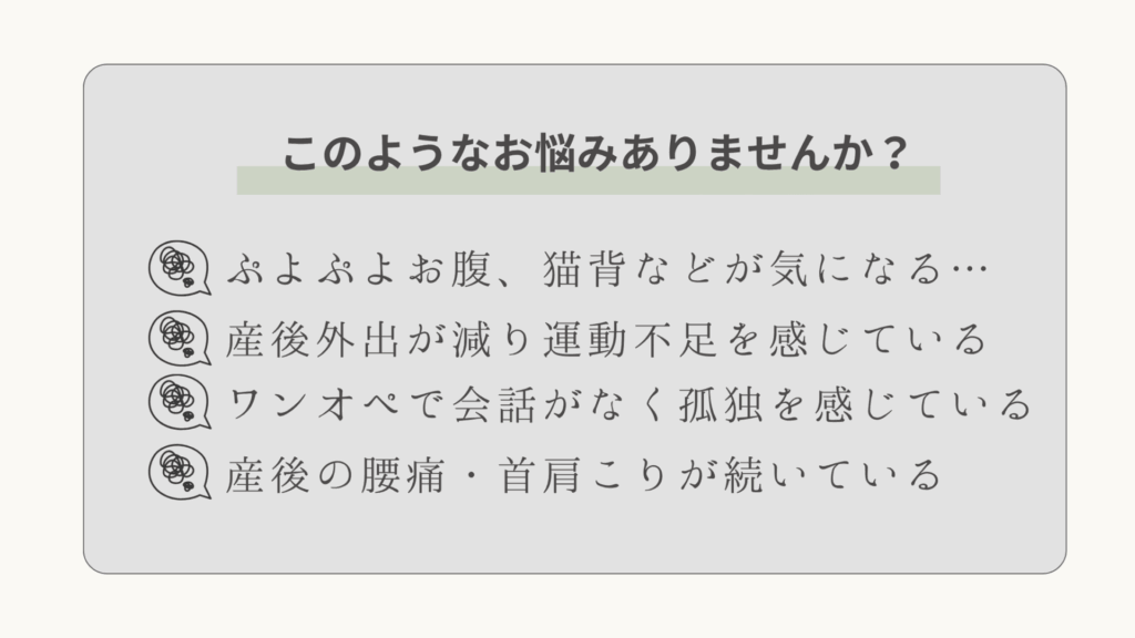 産後の期間を問わず、お腹まわり・姿勢を整えたい方なら大歓迎です♪